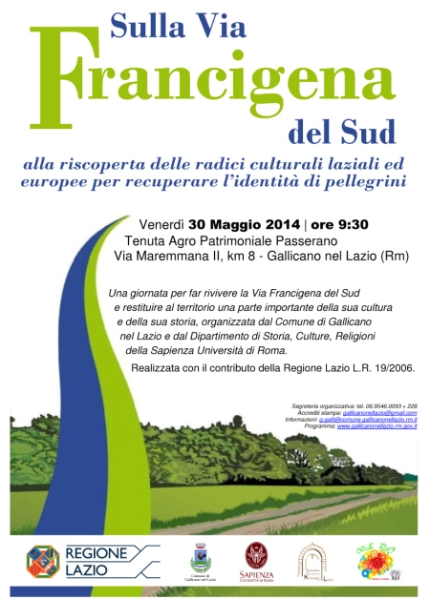 Gallicano nel Lazio (RM)- Con una lunga lista di parterre di relatori il Comune di Gallicano nel Lazio ha organizzato un evento bellissimo e forse alquanto singolare. In collaborazione con la Regione Lazio e l’Università la Sapienza da appuntamento per domani, venerdi 30 maggio 2014, al Castello di Passerano, presso Il Granaio del castello che ospiterà le conferenze e gli incontri, per una giornata dedicata alla scoperta della via “Francigena del Sud”, la strada percorsa dai pellegrini e dai crociati per andare o tornare dalla terra santa. Nella locandina che pubblicizza l’evento si legge: “Le Vie Francigene uniscono l’Occidente all’Oriente, il cristianesimo al paganesimo, sono una sorta di porta magica che racconta come questo paese sia cresciuto culturalmente. Le vie di connessione con gli altri, che siano il mare o la terra hanno arricchito la nostra civiltà portando ed esportando idee, cultura, abitudini, sapori e colori. Sono state una sorta di corridoio delle idee.