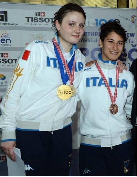 Frascati (Rm) - In attesa del super-appuntamento del 15-23 luglio a Kazan, dove si disputeranno i mondiali Assoluti del 2014, il Frascati Scherma attendeva buone notizie da Tbilisi, capitale della Georgia in cui si stanno tenendo i campionati europei Under 23. Ma le gare individuali non hanno regalato grandi soddisfazioni ai fiorettisti Filippo Guerra, Camilla Mancini e Francesca Palumbo che assieme ai maestri Marco Ramacci (fioretto) e Andrea Aquili (sciabola) e alla “riserva” Francesco Trani (nella squadra del fioretto) hanno composto la spedizione del club tuscolano in Georgia. L’ultimo a scendere in pedana in ordine di tempo è stato proprio Guerra che proprio nella mattinata di oggi (giovedì) ha dovuto abbandonare la competizione nel tabellone dei 16. Già nei gironi il percorso del fiorettista del Frascati Scherma non era stato brillantissimo (due vittorie e tre sconfitte), poi nella fase ad eliminazione l’azzurro aveva battuto in maniera convincente il britannico Bryant per 15-9 e successivamente si è fermato al cospetto del polacco Janda agli ottavi (sconfitta per 12-15). Un pizzico di delusione in più per la prova femminile dove Camilla Mancini e Francesca Palumbo (nella foto di Augusto Bizzi) erano arrivate con credenziali importanti, ma entrambe hanno dovuto lasciare la competizione negli ottavi di finale. La Mancini aveva avuto un discreto approccio nella fase a gironi (tre vittorie e una sconfitta), ma un sorteggio non molto fortunato (che le ha riservato la russa Zagidullina, poi vice-campionessa d’Europa) e un assalto non felice perso per 13-15 non le hanno consentito di andare alla ricerca di una medaglia. Discorso simile per la Palumbo che, dopo aver superato i gironi con quattro vittorie e una sola sconfitta, si è fatta sorprendere dall’austriaca Wohlgemuth (poi estromessa in semifinale dalla stessa Zagidullina) col punteggio di 15-13.