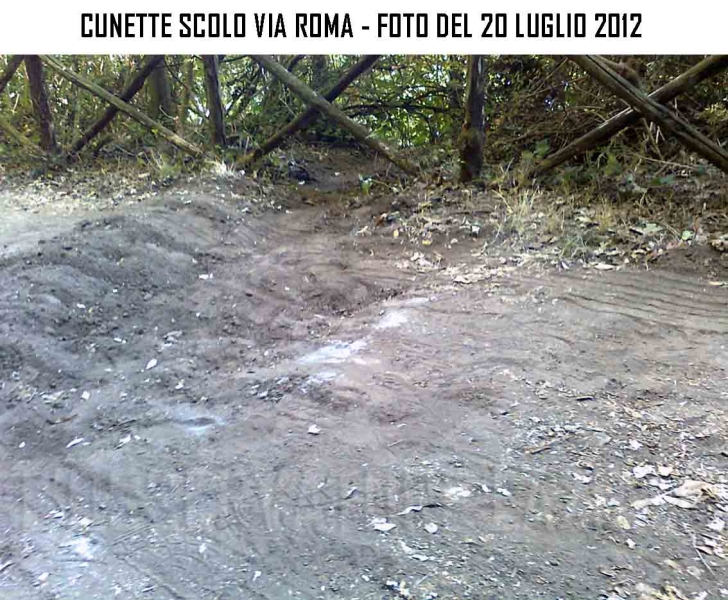 • Nella creazione di cunette di scolo lungo via Roma (Foto: CUNETTE SCOLO VIA ROMA). Sono state realizzate circa 25/30 cunette di scolo delle acque meteoriche, mediante scavo del terreno: in alcuni casi sono state rinforzate con il posizionamento di pietrame;