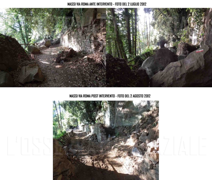 Gli interventi effettuati non hanno messo in sicurezza il versante compreso tra via Roma e via Tempio di Diana;