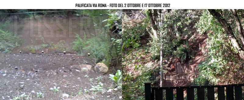 Di fatti, escludendo la creazione delle due palificate semplici nella proprietà ubicata in via Roma civico 1 (opere assolutamente non sufficienti al contenimento di un eventuale nuovo smottamento del terreno), gli interventi non hanno minimamente interessato il versante compreso tra via Roma e Via Tempio di Diana. Anzi, il concentramento delle acque meteoriche in punti ben precisi del versante tramite le cunette, può aumentare il rischio di frane, come del resto già avvenuto nel passato.