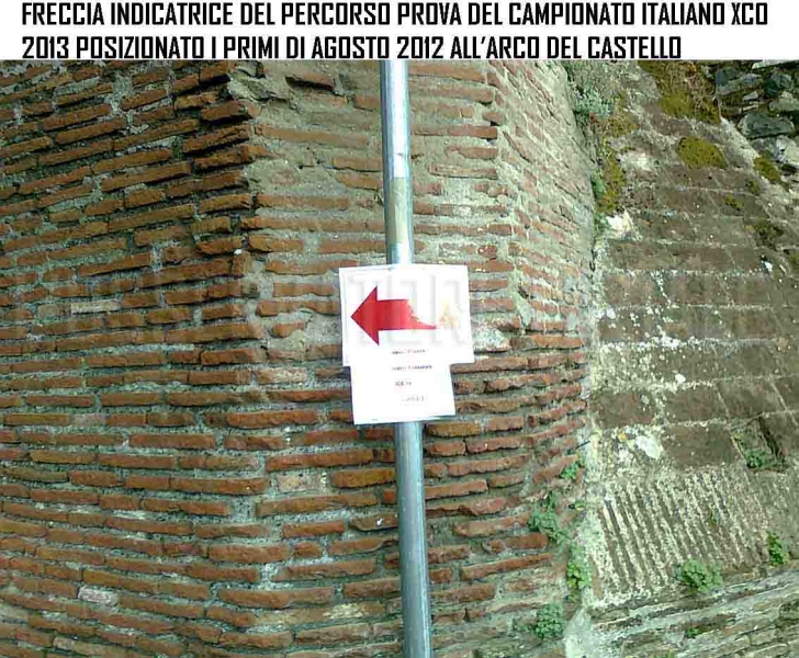Ai primi di agosto sull’arco del castello, è comparso un cartello che indicava il percorso XCO 2013: per tutta l’estate orde di ciclisti lo hanno provato. (foto allegata: PERCORSO PROVA 2013)