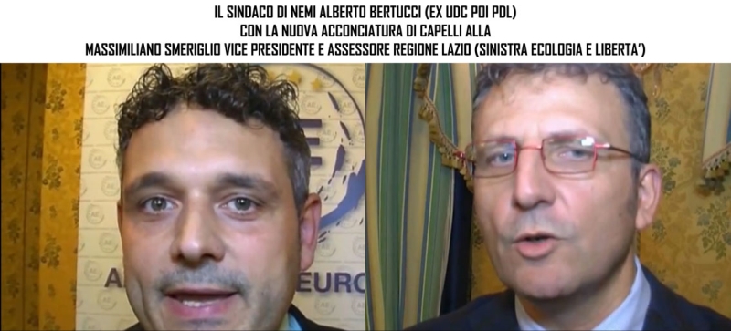 Dunque gli elettori di centrodestra di Nemi che hanno votato Alberto Bertucci sappiano che il primo cittadino ha già le dita dei piedi nel centrosinistra: sguardo fisso, pettinata alla Smeriglio (vicepresidente della Regione lazio Sinistra Ecologia e Libertà), frequentazioni rigorosamente di sinistra e vai col tango.