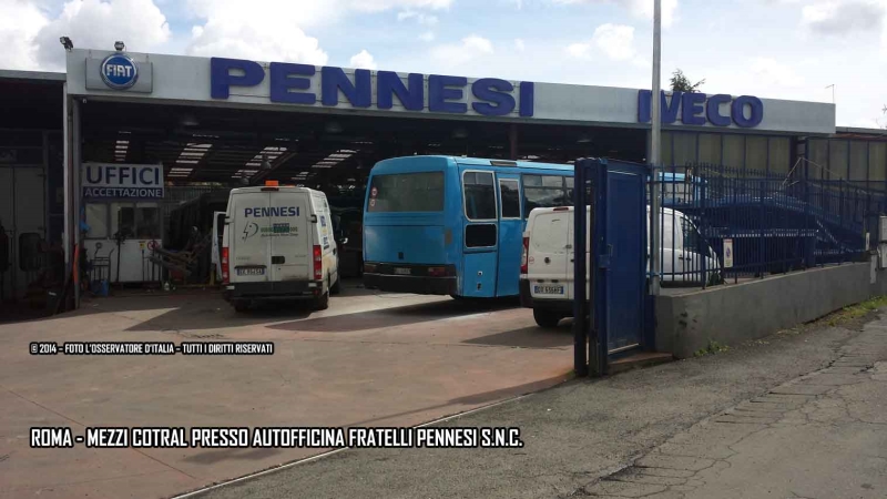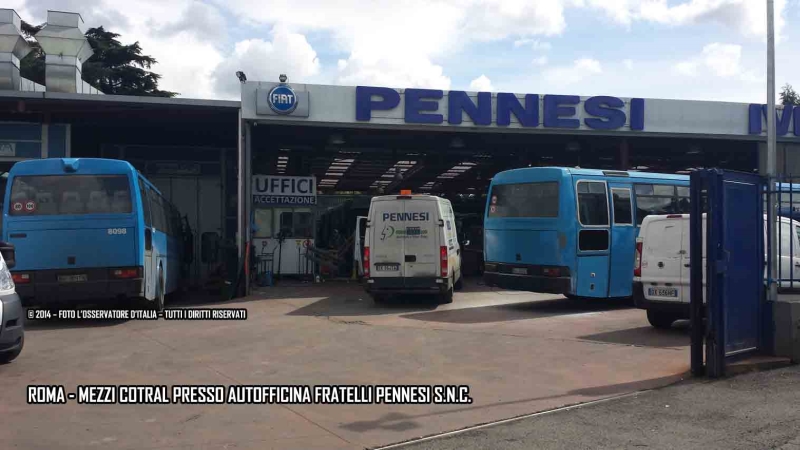 Questa volta siamo andati a visitare l’officina del privato Pennesi che si trova a Roma a due passi dal Grande Raccordo Anulare in via Salvatore Barzilai. Lì sostano numerosi mezzi Cotral, alcuni sono parcheggiati anche in strada e c’è anche un via vai di furgoni della “Cotral” che solitamente trasportano pezzi di ricambio.
